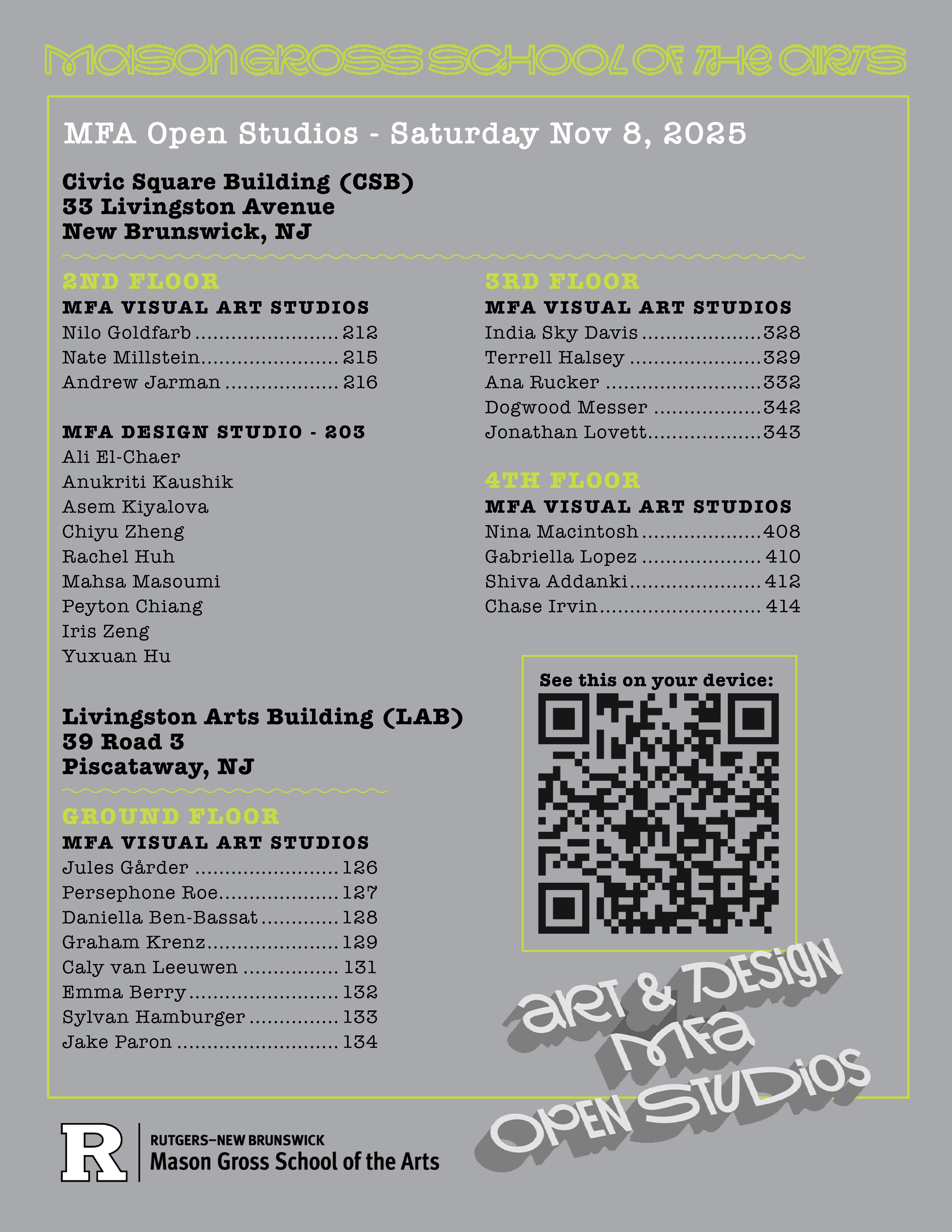 Nov 17: MFA First Year Exhibition Reception, 6-9pm